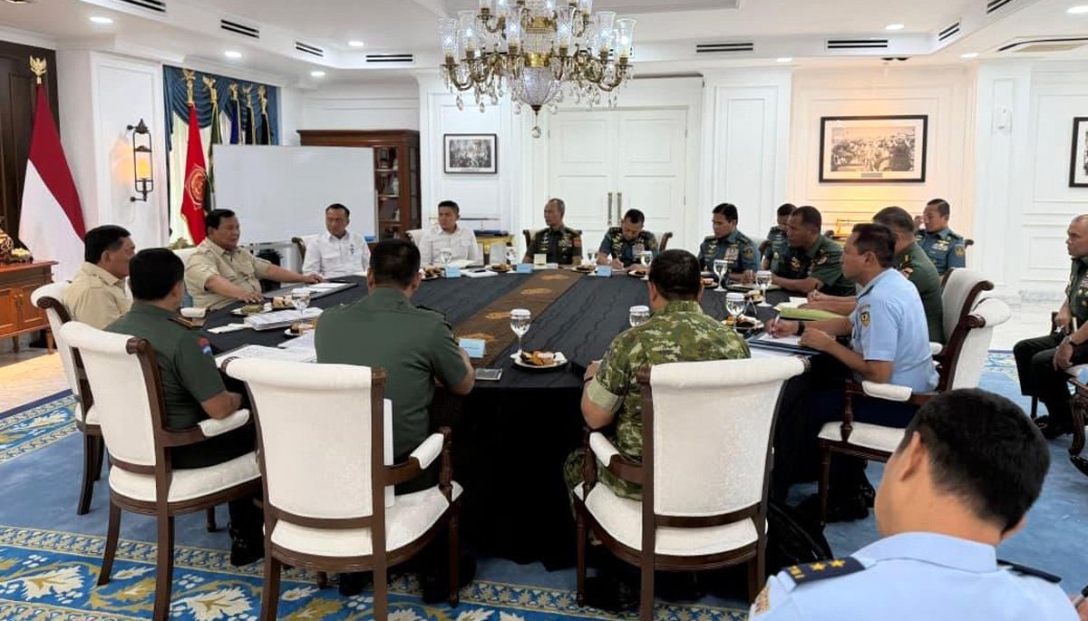 Presiden Prabowo Subianto menerima pertemuan rutin bersama beberapa pejabat utama TNI. Di antaranya Panglima dan Wakil Panglima TNI, Kepala Staf Angkatan Darat, Laut, dan Udara.